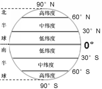 0°至30°为低纬度。30°至60°为中纬度。60°至90°为高纬度。